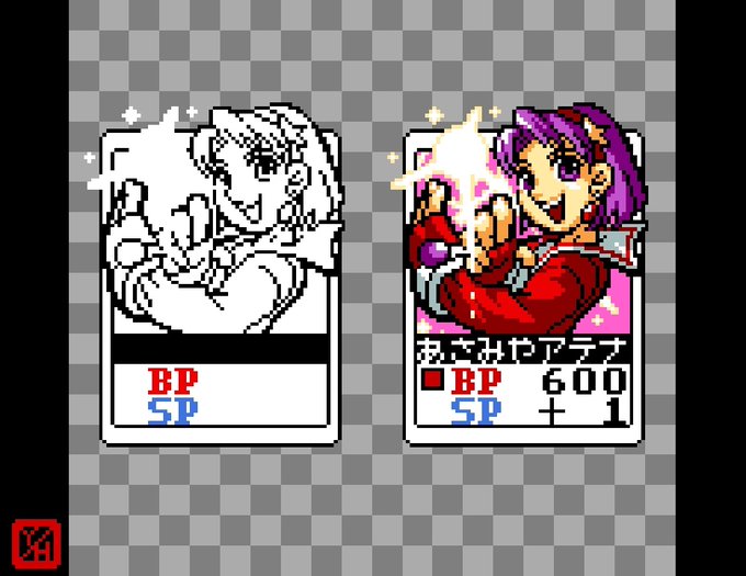 NPC『激突カードファイターズ』より、麻宮アテナのカードを模写してみたゾ。 #カードファイターズ #KOF #麻宮アテナ #麻宮アテナ生誕祭2022 #SNK #ネオジオポケットカラー #ドットアーティスト #ドット絵 #レトロゲーム