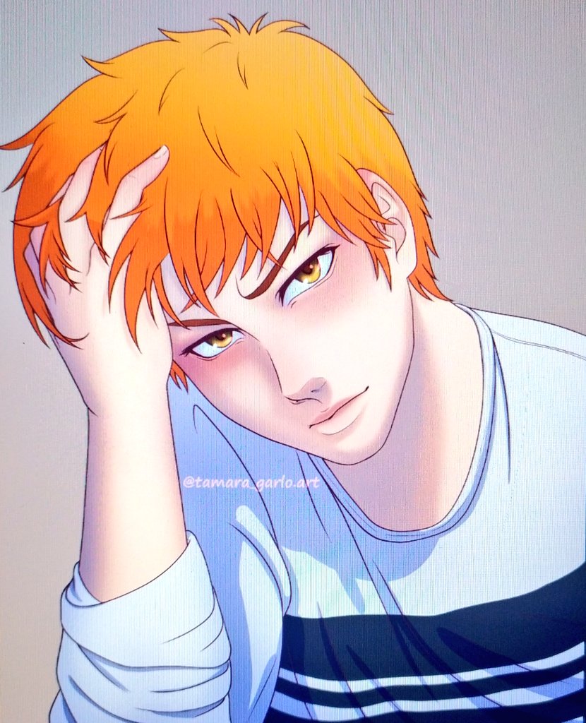 🎉 Happy Birthday Kurosaki kun~ 🎂🍓 #黒崎博 #rkgk #BLEACH #kurosaki #ichigo #黒崎一護生誕祭2022FA #黒崎一護誕生祭2022 ✨ In progress ✨ Why is it so hard to make it look like you without that typical pointed hair of yours? Still, I think you look good 😤🧡