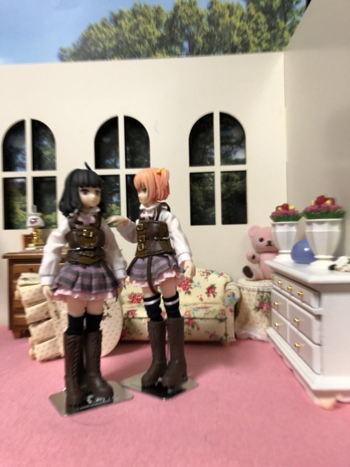 百合亜パイセンを祝う1年生ズ🎀 喜んでます( ̇ ̵ ̇ )ིྀ #アサルトリリィドール部 #アサルトリリィ #ルド女 #黒木・フランシスカ・百合亜生誕祭2022 #黒木・フランシスカ・百合亜誕生祭2022 #樹脂粘土 #マカロン #どら焼き #ミニチュア