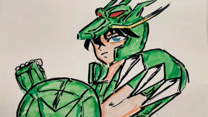 #龍星座の紫龍生誕祭2022 #聖闘士星矢 #SaintSeiya 初描き紫龍🖋紫龍は、熱いハートを持って、友情の為には自己犠牲も厭わない素敵なお兄さんだと思います🎶 お誕生日おめでとうございます㊗️🎂🥳🎉