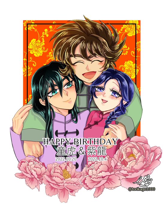 すごくごちゃごちゃしちゃった気もするんですけど!童虎ちゃん紫龍〜!お誕生日おめでとう〜!🎉 紫龍間に合わなかったので一緒に描きました☺️💕五老峰大好きです☺️ ※牡丹はフリー素材お借りしてます。 #天秤座の童虎生誕祭2022 #龍星座の紫龍生誕祭2022 #ドラゴン紫龍生誕祭2022