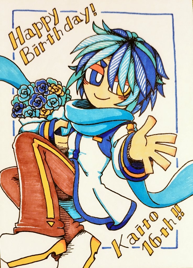 KAITO兄さん生誕16周年おめでとうございますっ🎉🎉🎉(イラスト遅刻ごめんなさい💦) これからもずっとずっと素敵な歌声を聴かせてください✨ #KAITO誕生祭2022 #KAITOお誕生会2022 #KAITO16th