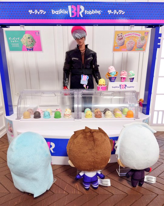 クーラ「アイスくださーい🍨✨ あれ?この店員さんK'に似てるよ?」 K'「気のせいだろ…」 クーラ「見て見て!クーラのアイス3段にしてもらったよ!一番おっきいのにしてもらったよ💕」 昨日娘がクーラちゃん用に31アイス描いてくれたので早速使いました✨ #クーラ誕生祭2023 #KOFクーラ生誕祭2023