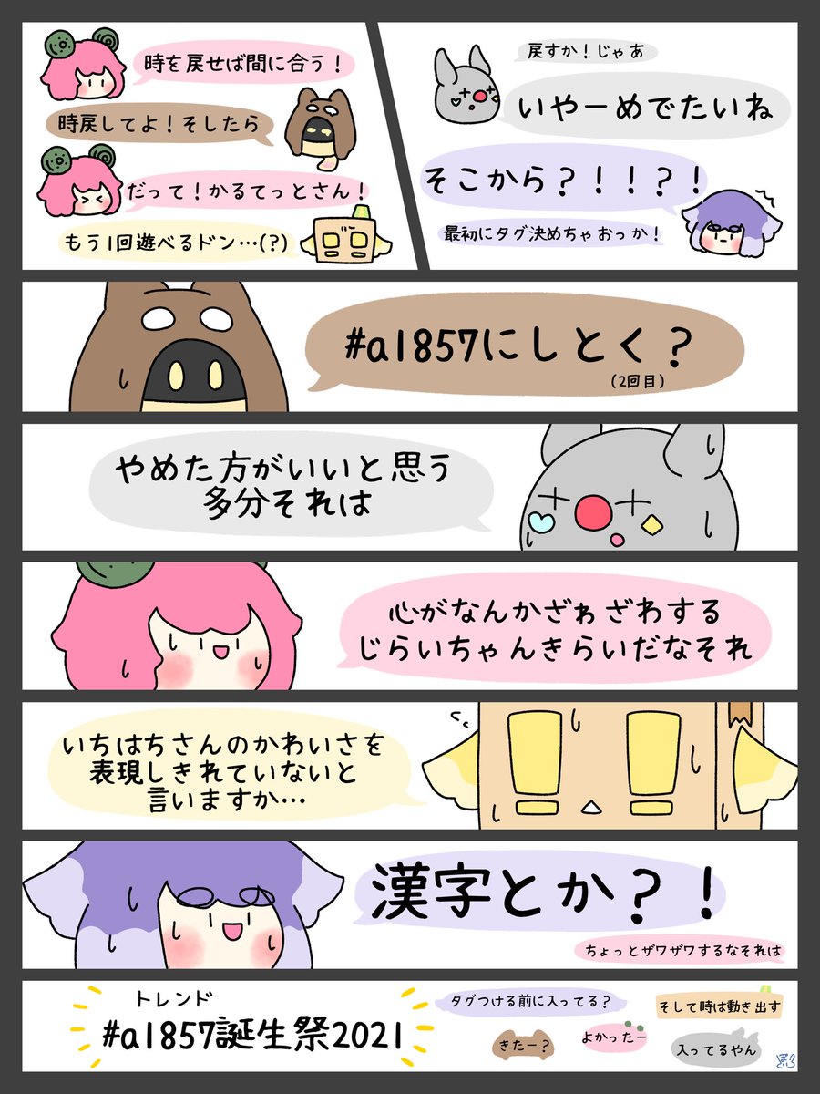 #bintrollFA #絵1857 #a1857誕生祭2021 いちはちさんのお誕生日配信で、個人的に特に好きな部分の描き起こしです!🥳🎉✨✨ てぇてぇ会話ばかりで入り切らなかったので…是非……本編を見て下さい……! 1857さん、改めてお誕生日おめでとうございました!🙌🎉🎉🎉