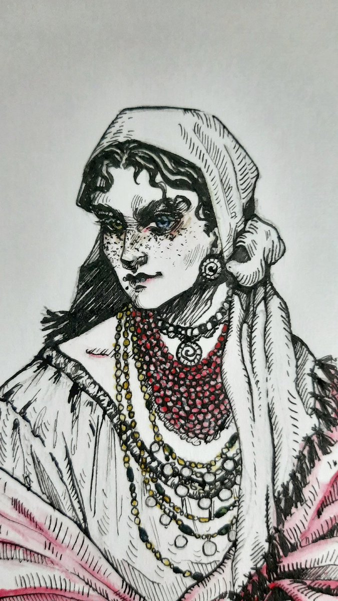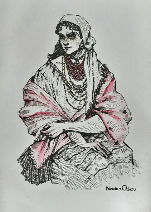 День перший, Хустка. Моя персонажка Меланія я думаю ви її будете часто бачити бачити цьому місяці Щось твітер поступово перетворюється на інсту по хештегам😅 #ІНАКОТОБЕР #украрт #артКозацтво #Inktober #inktober2022 #ArtistOnTwitter