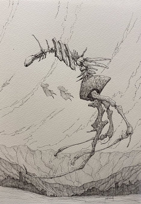 丸ペンと墨で水彩紙に絵を描きます。細い線と小さい点々でできています。4枚目は大きくてスキャナーで全部取り込めませんでした。 #あなたがまだ見たことがない世界かもしれない作品展 #ペン画 #丸ペン #絵 #art #illustration #drawing
