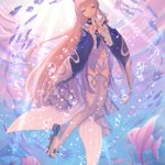#あなたのぴんく色の作品を見せてください #アナログ絵 #透明水彩 ピンクとミントブルーの組み合わせが好きで定期的に描きたくなります この作品では金箔も使い華やかに…💖 『ただ愛』 2023年制作 個人蔵