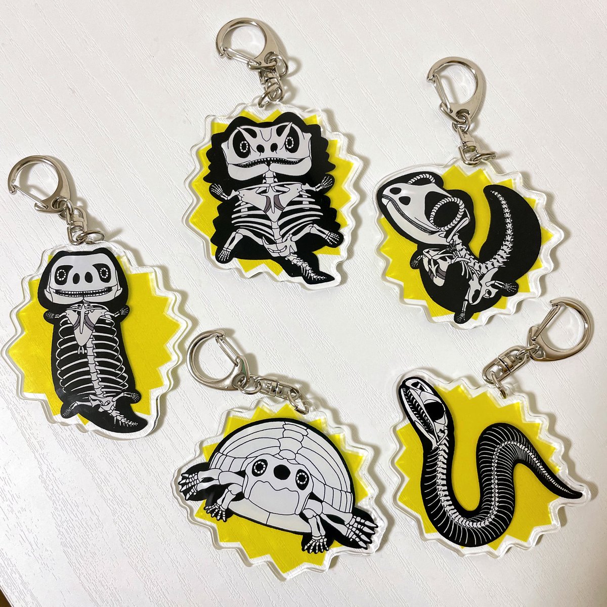 雷に打たれた爬虫類たちの運命やいかに!? ツク之助&らえらぷす(@GET_AWAY_TRIKE )コラボデザイン「落雷レプタイルズ」 いきもにあにキーホルダーやクリアファイルなど色々持っていきます! equimonia.net B36「GET AWAY FUTOAGO」できみもホネホネ爬虫類に出逢おう! #いきもにあ2022 twitter.com/i/web/status/1…