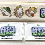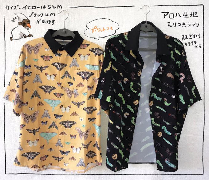 いきもにあに持っていく新作グッズ🐛アロハ生地の襟付きシャツ、総柄のエコバッグ、イモ研主張ピンバッジなどなど…全部かわいく仕上がったのでぜひ実物見にきてください~ サイトで価格が見れたりグッズ検索ができます→apps.equimonia.net/exhibitor/150 #いきもにあ2022