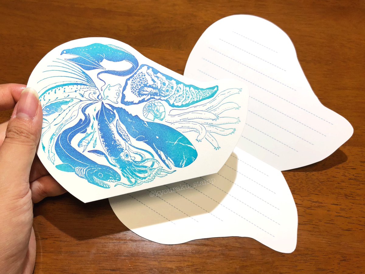 #いきもにあ2022 新作グッズ 🐟綿津見深海水族館 📨メッセージカード 13種の深海生物を組み合わせるとオウムガイのシルエットが浮かび上がる 当館人気のスタンプラリーをお手紙に添えてみませんか? 半透明の封筒に当館オリジナル封蝋シールをお付けします🐙