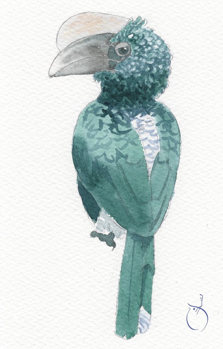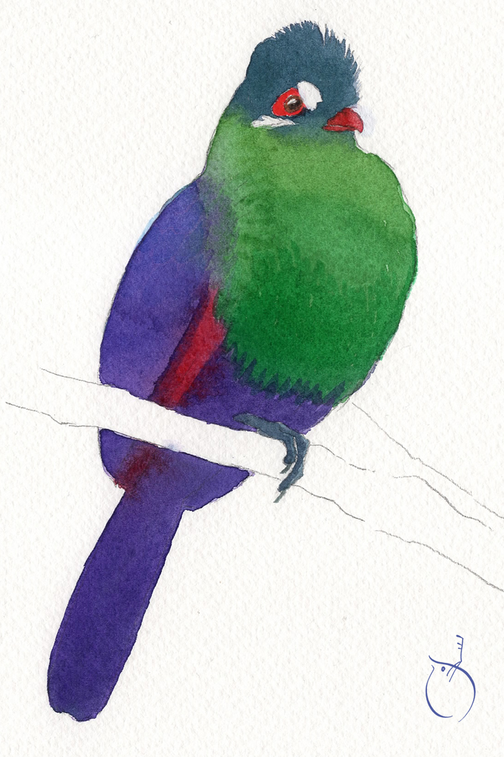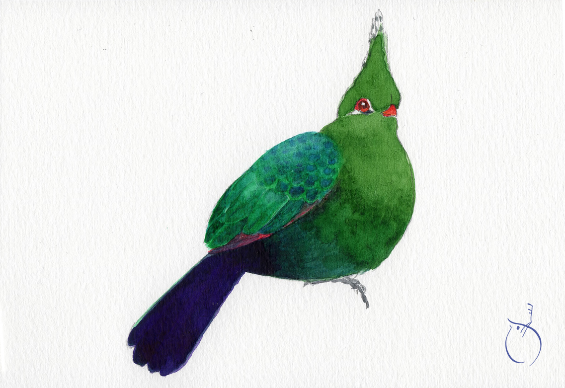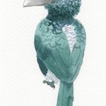 #いきもにあ2022 で販売する #水彩画 の紹介です🤗 リビングストーンエボシドリ、 オウカンエボシドリです! 最初どっちも名前がわからなくて、みどりちゃんとまゆげちゃんて呼んでました………