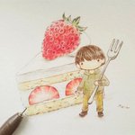 くだものファッションというカプセルトイのいちごちゃんが可愛かったのでイラストのモデルになってもらいました♪ #くだものファッション #いちご #イラスト #アナログ絵 #カプセルトイ twitter.com/qualia_45_/sta…