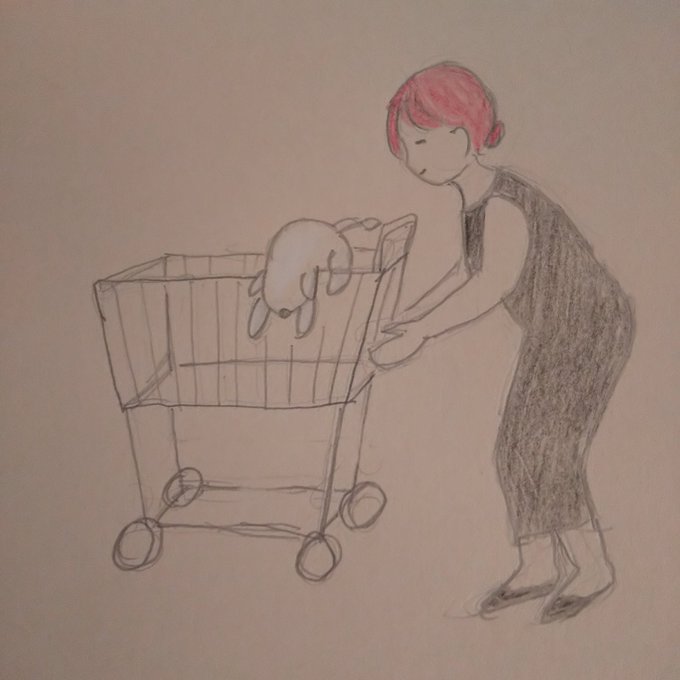 おはようございます🌞 ホームセンターのペット用カートに乗せたい私と、絶対抱っこじゃないとイヤな脱走犬さん🐶 今日も朗らかに〜🧡 #イラスト #イラスト好きさんと繋がりたい #絵描きさんと繋がりたい #いぬいらすと #いぬのきもち #落書き #落書イラ #色鉛筆イラスト