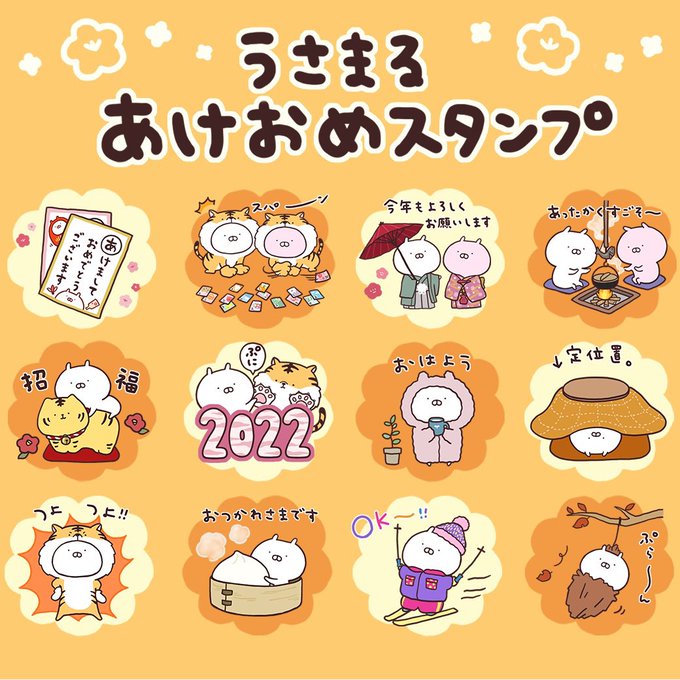うさまるあけおめスタンプが登場です!🐯🐾 ぜひ一年の締めくくりと新年をうさまるスタンプと共に〜⛷✨ #うさまる #あけおめスタンプ2022 line.me/S/sticker/24977