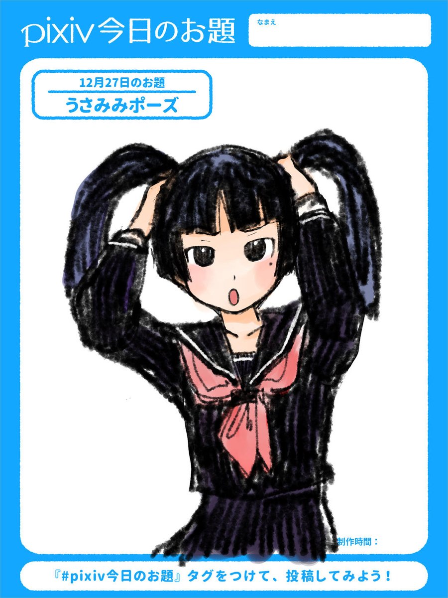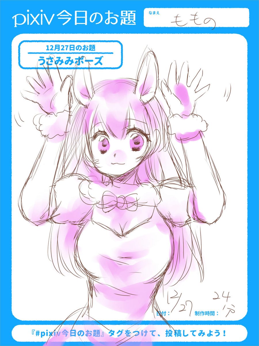 今日のpixivでのお題「うさみみポーズ」 「ウチがトスしちゃあけん 来年に向かってアタック! …って全然違うし!」 #うさみみポーズ #絵描きさんとつながりたい #絵描きさんと繋がりたい #絵柄が好みって人にフォローされたい