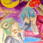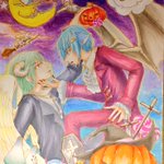 描けたぁぁぁぁぁぁ!!!! プリクラ風! 今回はアタシも入れさしてもらったよ!シンジロウとオソロ〜 恥ずかしがってるアスミちゃん色んな人に刺さればいいんだ #イラスト #ハロウィン #うちの子とハロウィン #イーヴァン #創作 #デジタルイラスト #プリクラ #うちの子とプリクラ