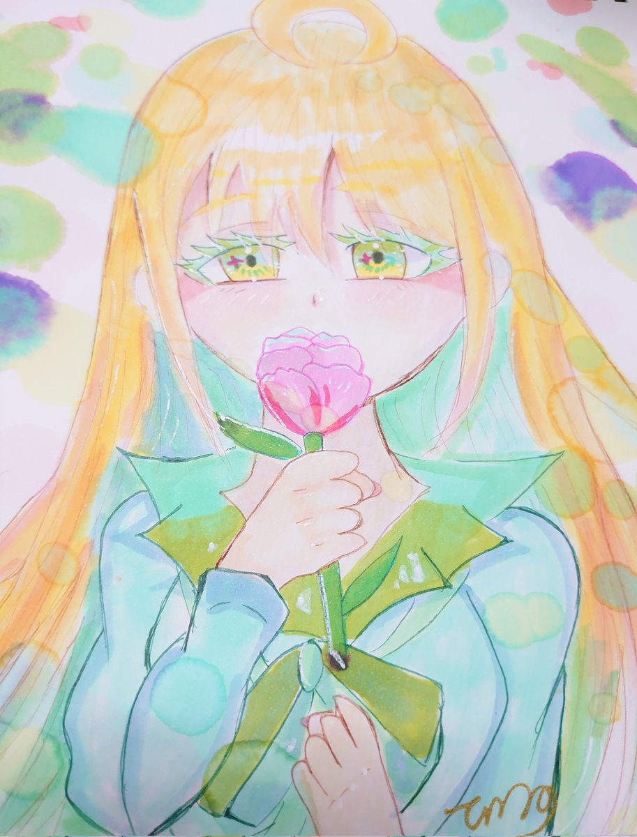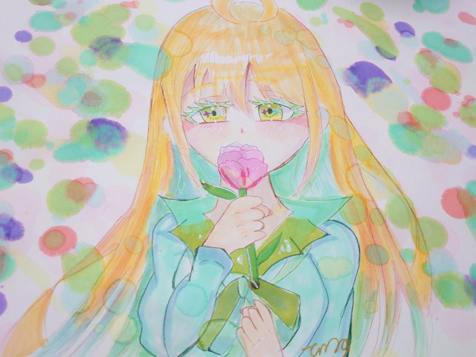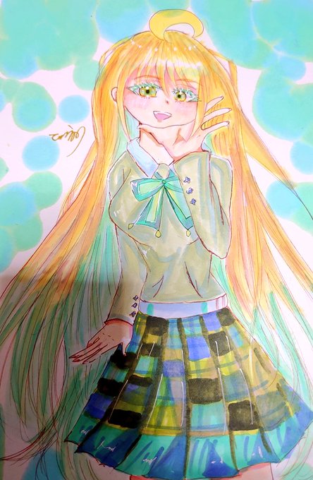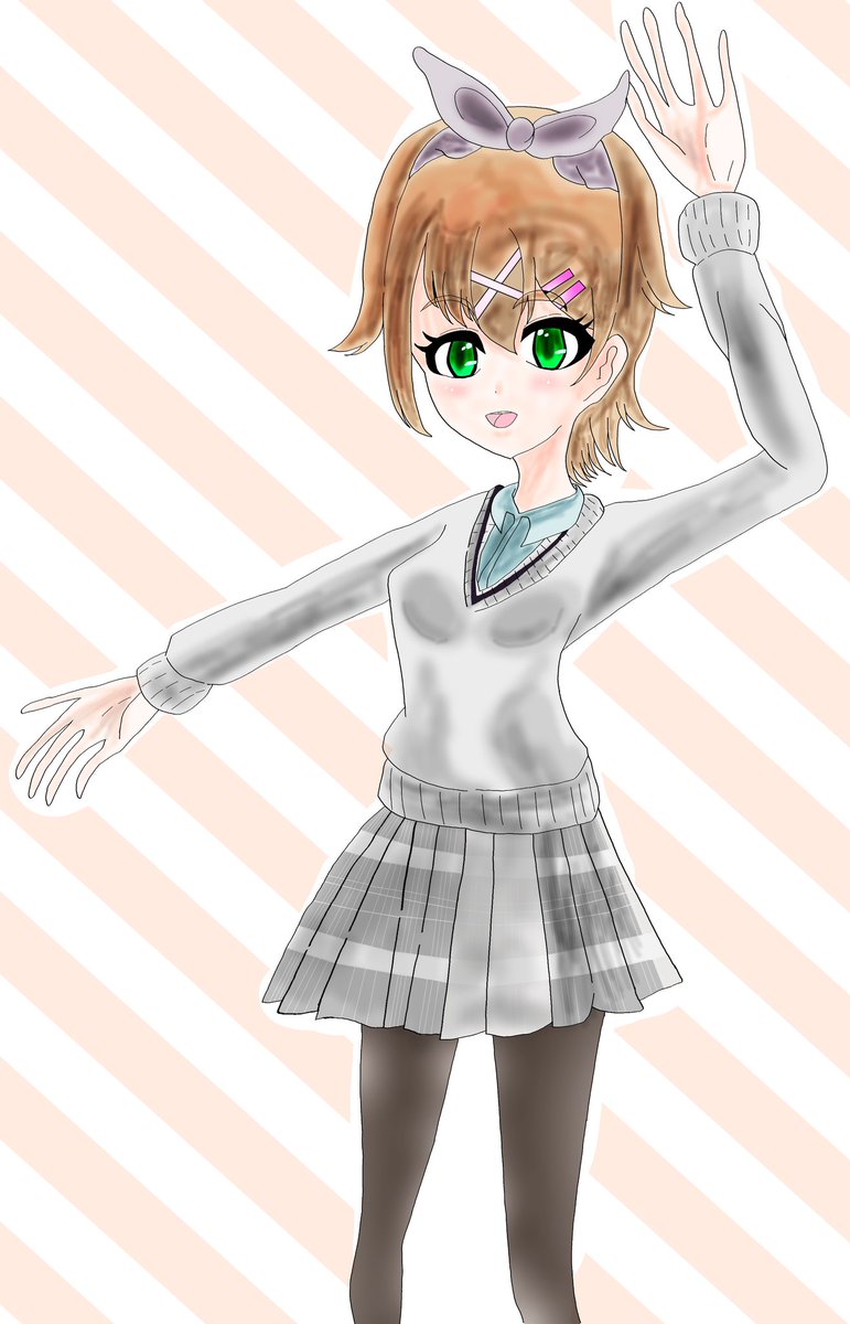 タグの#うちの子に正直着てほしい衣装のリクエスト!m(_ _)mセーラー服を着た萌花ちゃん!!できた…! (スカート塗り方間違えてしまった…😇😇😇😇😇) 顔だけでも見て…くれ……… #アナログイラスト #うちの子可愛い