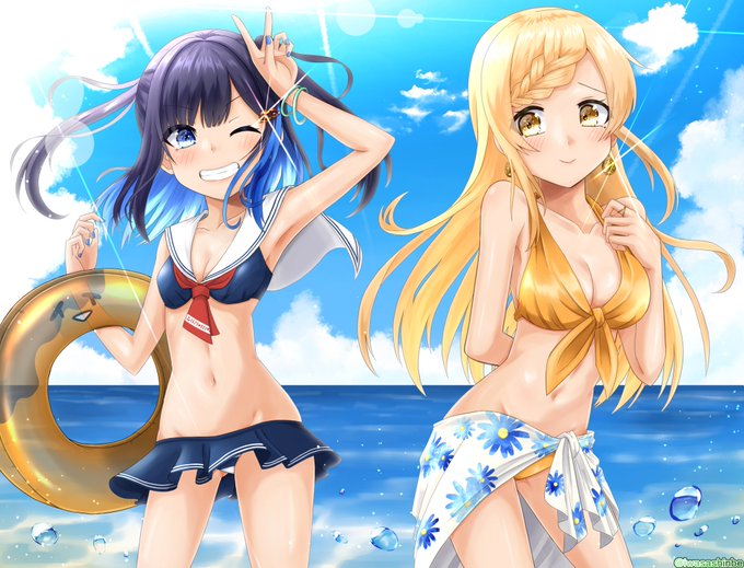 夏ももう終わりですね ぼくのイラストも今月はここまでです みのるさん、ななかさん ありがとうございましたm(_ _)m 両手に花ひゃっほぉぉぉぉぉ!! #おえかきみのる #ななあと #絵描きさんとつながりたい #イラスト #夏の創作クラスタフォロー祭り