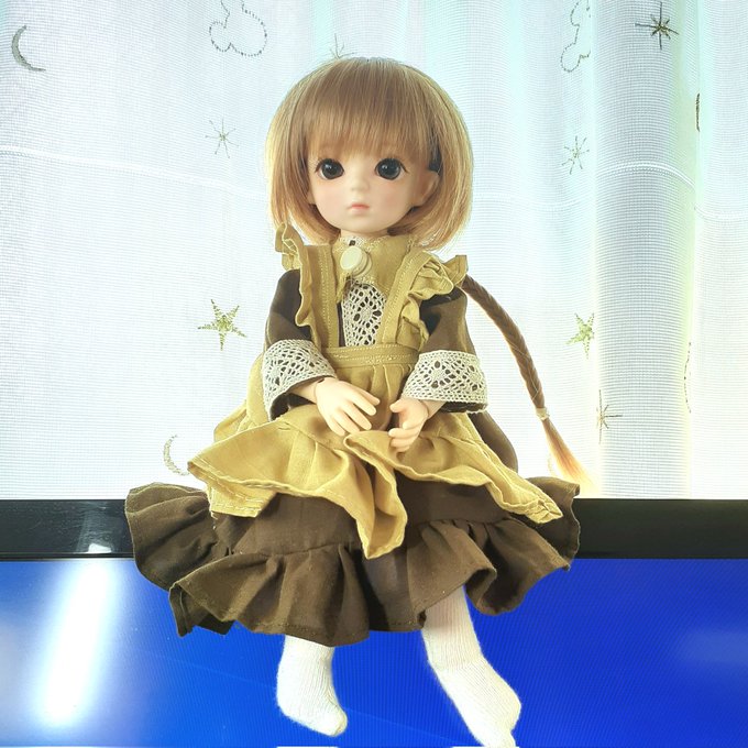 おはようございます Joanneです。 今日も地味に蒸し蒸ししそうですね。 この服、なんだか家の制服みたいなことになってますけど、早く夏服にして頂けませんか? #Bluefairy #doll #おはドル