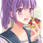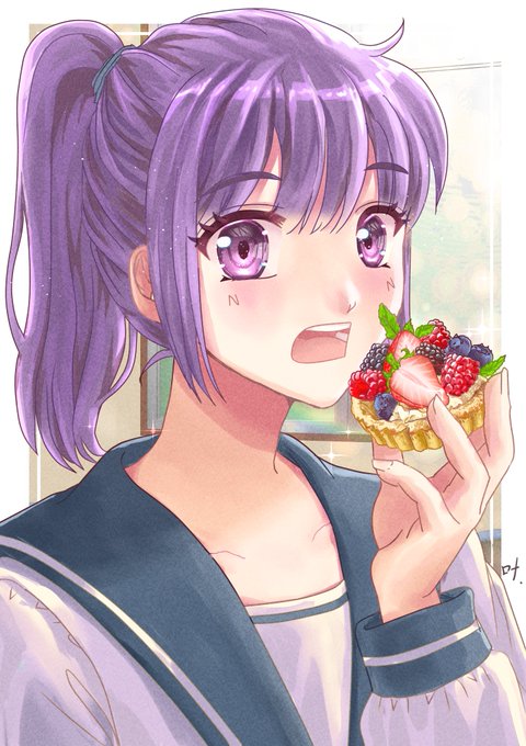 11枚目です。 「大好きなケーキ頬張る瞬間見られちゃった><;」みたいな感じ💦 タルトは頑張って描いた!!けど髪の毛わけわからなくなった…… #秋の創作クラスタフォロー祭り #お絵描き好きさんと繋がりたい #お絵描き練習中 #イラスト #絵描きさんフォロバ100