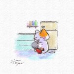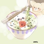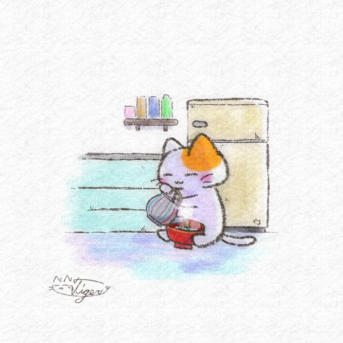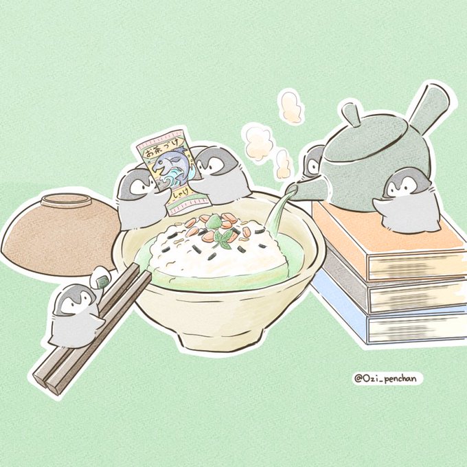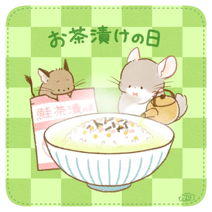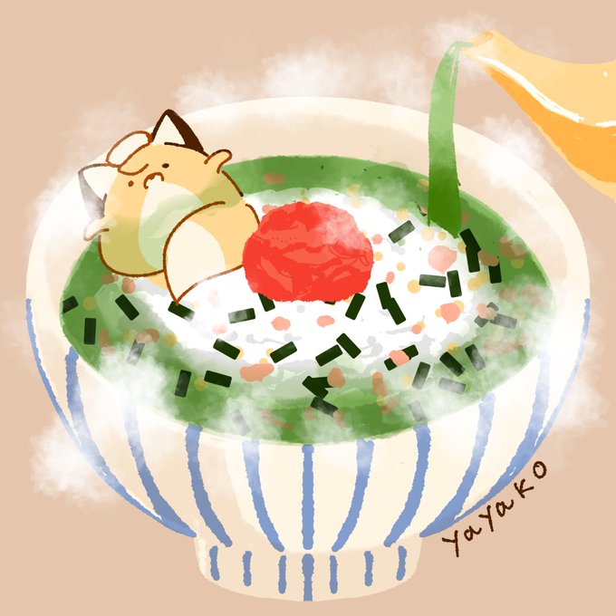 おはようございます!! #お茶漬けの日 😺、こっそり食べるなんて、大食い 2人が、許しません!!!😅 今日も素敵な火曜日を〜🤗 #イラスト好きさんと繋がりたい #絵描きさんと繋がりたい #みんなで楽しむTwitter展覧会 #イラスト