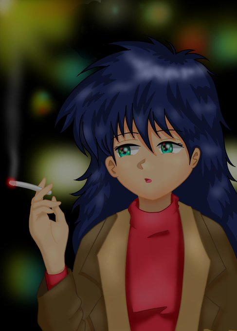 「ずっと辞めてたんだけどね」 中3で春日に注意されてから禁煙に励んでいたが再びタバコに火をつける事にというイメージで鮎川の似顔絵を描いてみました。 まつもと先生が亡くなられて久しい今でも日本中みんなこの作品が大好きです♥ #きまぐれオレンジロード #鮎川まどか