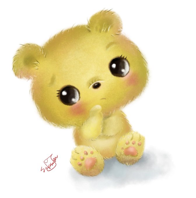 『ん〜』 久しぶりに雪がどっさり積もりました どーやったら可愛い子が描けるかなぁって考えながらペンを動かしてたら、そこそこ可愛い子が出現しました😅 #動物イラスト #くまさん #Procreate