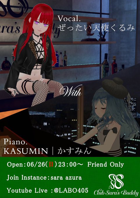 6月26日23時にCSB音楽会をします! 出演者は ぜったい天使くるみさん カスミンさんです くるみさんの素晴らしく力強い歌とカスミンさんの力強いピアノを是非聴きにきて下さいね♪ twitter.com/zti_krm?s=21&t… #くるみちゃんまじ天使 #VRCクラブSB