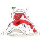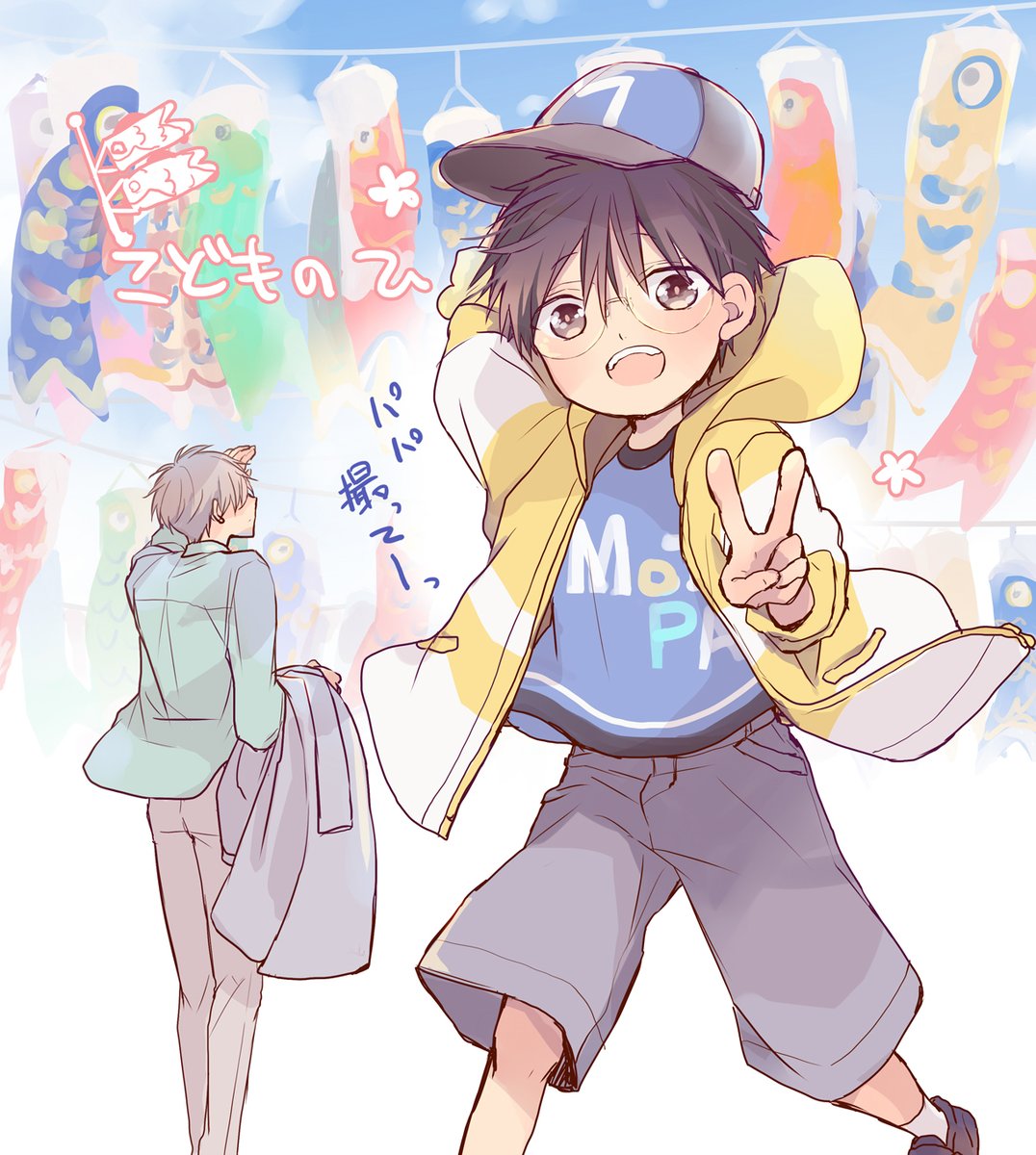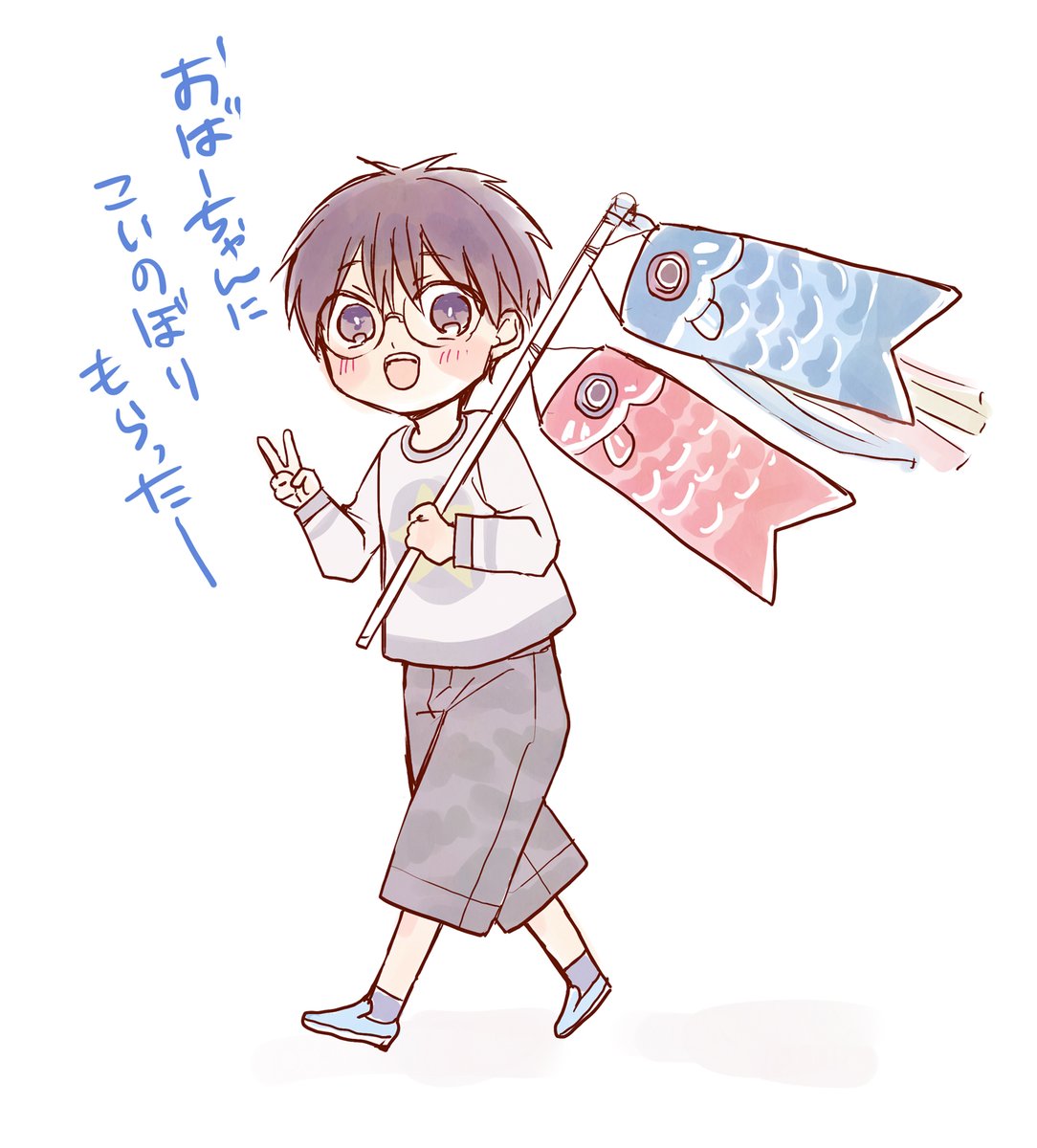 #こどもの日なので武者を貼るでござる #こどもの日 いいねの巡回完了🫡✨✨ こどもの日といえばオデコさん💡✨✨ 必殺仕事ニャン第一弾はエビフライの髷を頭に乗せて、相棒の紐狂いのおネチと双六で大活躍しているよ🍤🎲 カフェ冥土では眠気に注意⚠️🥱🫧