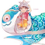 屋根より幻想郷より高いこいのぼり~🎏 #チルノ #四季映姫・ヤマザナドゥ #小野塚小町 #深夜の真剣お絵描き60分一本勝負 (東方版・1756回目参加) (※2022/5/5お題) #こどもの日 #こいのぼり #555の日