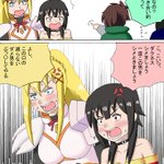 バランスが変ですが上げます これも紅伝説ではカットされてました小説5巻の終盤にめぐみんの学友ふにふらとどどんこにカズマの彼女宣言(?)をするめぐみん 腕を組んでここまで積極的だったかはわかりませんが私の妄想なので #この素晴らしい世界に祝福を #このすば #めぐみん