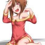 バランスが変ですが上げます これも紅伝説ではカットされてました小説5巻の終盤にめぐみんの学友ふにふらとどどんこにカズマの彼女宣言(?)をするめぐみん 腕を組んでここまで積極的だったかはわかりませんが私の妄想なので #この素晴らしい世界に祝福を #このすば #めぐみん