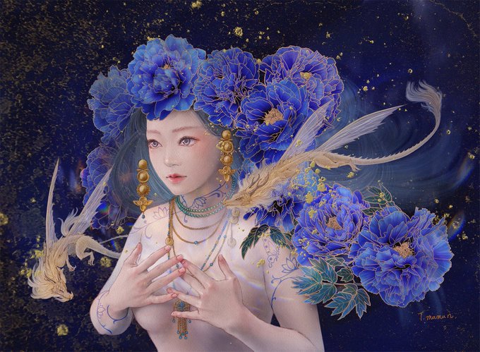 色鉛筆画家、弥永和千先生の教室より 紫陽花描きました🎨 青から入って形を切り取っていったのですが、色つけようかな…って段階で、青を基調にしたまま進めたくなって仕上げこんな感じになりました😳 まだギリギリ咲いてるうちに投稿します😅💦 #色鉛筆 #色鉛筆画 #これを見た人は青い画像を貼れ