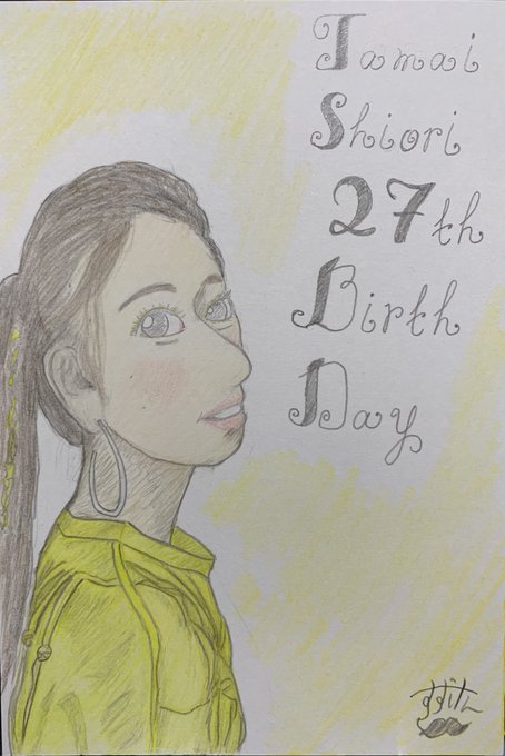 詩織ちゃんお誕生日おめでとうございます! ファン歴10年になりましたが、どの時代を切り取っても全力で一生懸命で顔面国宝脚長世界遺産な詩織ちゃんは私の誇りです💛 27歳も素敵に楽しく過ごせますように! ✩⃛映画のキャラに扮したしおりんが見たい✩⃛ #momoclo_fanart #玉井詩織生誕祭 #しおりん