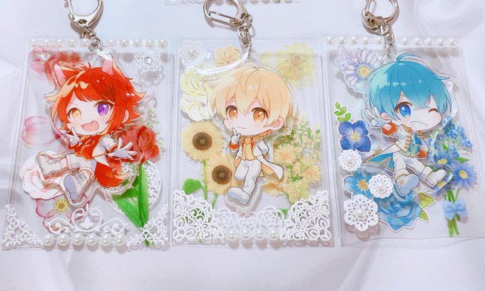 作るのが楽しくて♡ デザイン少し変えながらまた作っちゃいました(*´ 艸`) お花畑なアクキーカバー*✻*✼̥୭*ˈ どなたかFFさんで貰ってくださる方いるかな…|ノo・) 欲しいなんて思ってくださる方はカラーを入れてリプくれたら嬉しいです♡ #すとぷりギャラリー #すとぷり手芸部