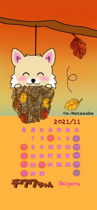 おはようございます😊 チワワちゃんの11月のカレンダー壁紙が出来ました💕 使って頂けるようでしたらご自由に保存してお使いください🥰 #みんなで楽しむTwitter展覧会 #カレンダー #ちわわ #壁紙 #11月 #秋 #autumn twitter.com/s_watanabe2020…
