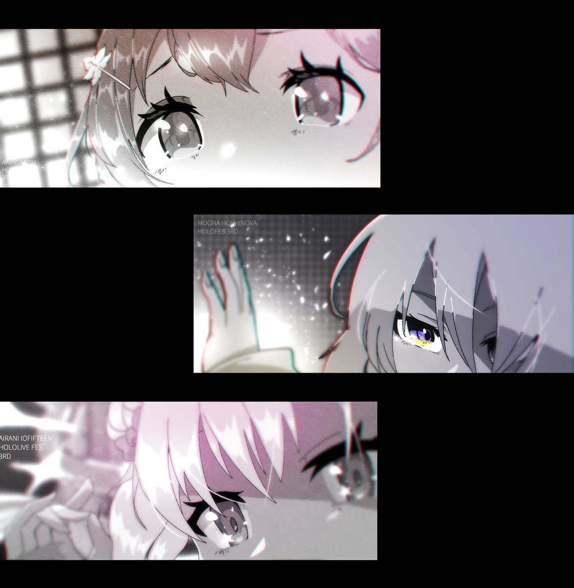 It's been a long time coming, congratulations on your 3D debuts, you all made sure the wait was worth it 😭 Art inspired by the visual style of Mai Yoneyama #holoID #GambaRisu #HoshinovArt #ioarts #つながるホロライブ