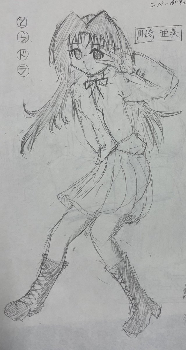 大河ちゃんカラーラフ~のはずが…(=゚ω゚)ノウニャンコ♪ 大量の落書きになってるなぁ 個人的に好きなアニメ最終話の制服姿ニョロね~ …………ポンデライオン(ノシ'ω')ノシッポバンバン! #とらドラ #絵描きさんと繋がりたい