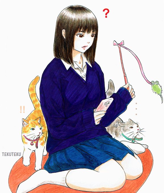 #どうでもいい報告をする #夏日 暑いので腕まくりをしたら腕の血管(筋トレ・ボディビル用語で言うバスキュラリティ)が浮き出ていい感じだったので自撮りしようとしたら光の加減で良く見える位置だと部屋の余計な物が写るしそれを避けるといまいち血管が…でやめた💪😅 #猫好き #オリジナルイラスト