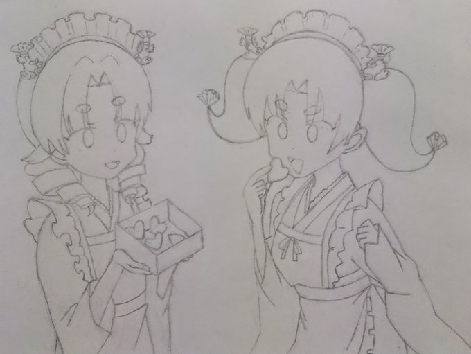 なごやたん 店舗誕生19周年おめでとうございます🎉🎉🎉(๑´ω`ノノ゙ぱちぱちぱち✧ さっぽろたんを見ながらφ(・ω・ )カキカキ🎶 美味しそうだからツインテールを食べてみたかったり、なかったり……🍤( '-' 🍤 )エビリファイッ #なごやたん #ビッカメ娘 #ビッカメ娘を描き隊