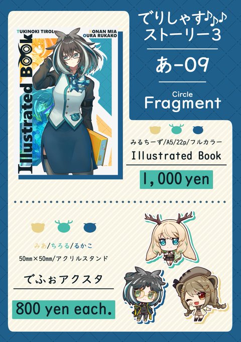 4/29(土)でりしゃす🎶ストーリー3にて、みるちーずのイラスト本とアクスタのお品書きです!【あ-09】で頒布予定です。 当日はよろしくお願いしますー! #ななしいんくオンリー twitter.com/Rune891/status…