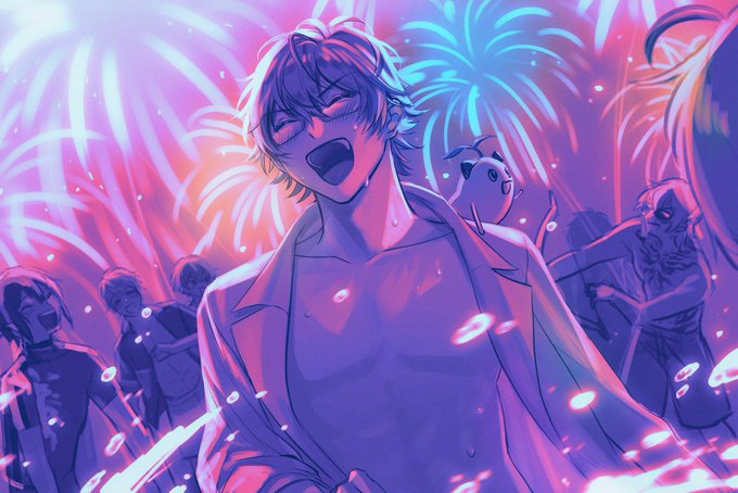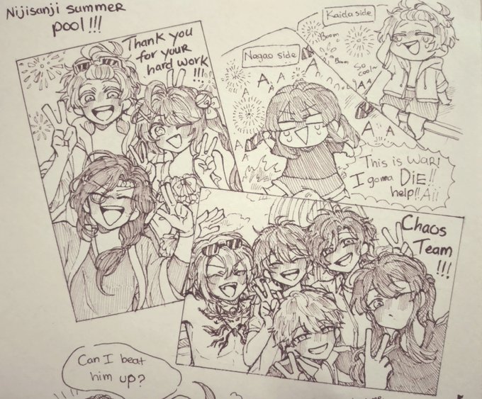プール開きでの国際男子達がめっちゃ楽しそうで見てるこっちも楽しかった!!!!素敵な時間をありがとう☺️ had a very good time! Thank you☺️ #にじさんじサマープール #HaYun_Art #suha_art #Briskart #drawluca #長尾百景