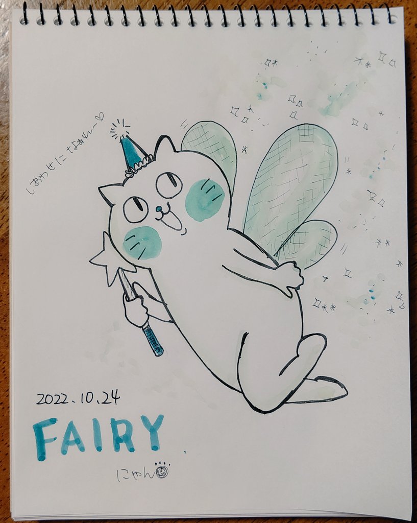 #インクトーバー に母娘で参加中 10月24日のお題は #FAIRY (ФωФ) 小さな幸せお届けしますシャララーン✨ (σωσ) まるきゅー #inktober2022 #inktober #にゃん家もお絵描き