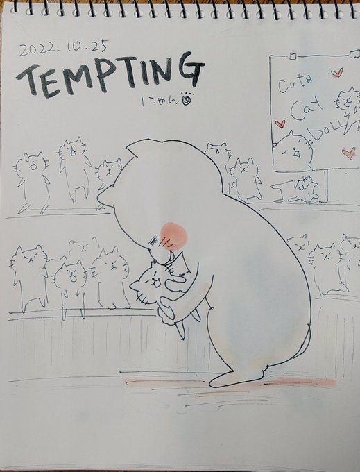 #インクトーバー に母娘で参加中 10月25日のお題は #TEMPTING (ФωФ) 可愛い子を見るとデレデレしちゃう (σωσ) 毎日楽しみにしています #inktober2022 #inktober #にゃん家もお絵描き