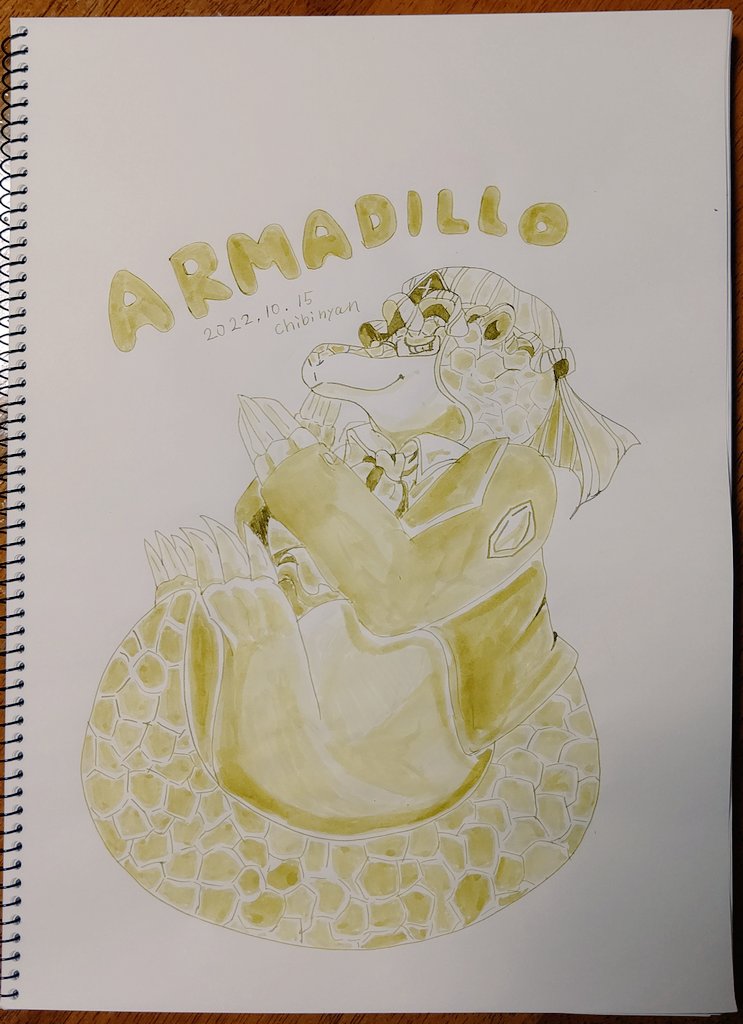 #インクトーバー に母娘で参加中 10月15日のお題は #ARMADILLO (ФωФ) アルマジロとニャルマジロ (σωσ) 亜留間次郎先生 #inktober2022 #inktober #にゃん家もお絵描き