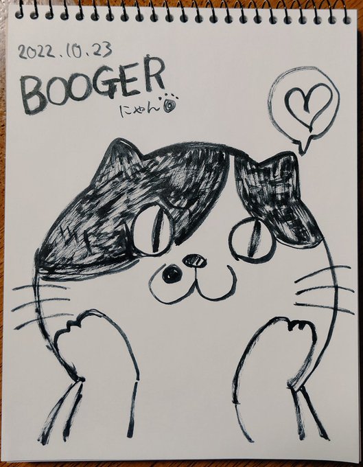 #インクトーバー に母娘で参加中 10月23日のお題は #BOOGER (ФωФ) これはチャームポイントなのよ✨ (σωσ) 描いてる時にめちゃ擦れちゃった😭 #inktober2022 #inktober #にゃん家もお絵描き