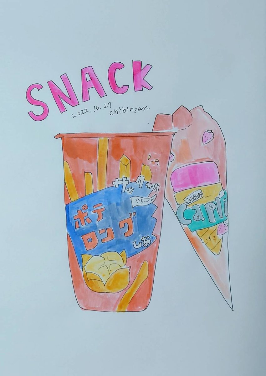 #インクトーバー に母娘で参加中 10月27日のお題は #SNACK (ФωФ) チップス系はのりしお味が好き (σωσ) 好きなお菓子 #inktober2022 #inktober #にゃん家もお絵描き