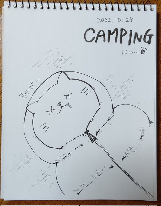 #インクトーバー に母娘で参加中 10月28日のお題は #CAMPING (ФωФ) 寝袋を体験してみたい! (σωσ) マイクラキャンプ部 #inktober2022 #inktober #にゃん家もお絵描き