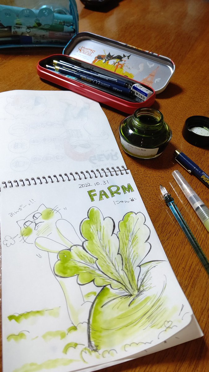 #インクトーバー に母娘で参加中 10月31日のお題は #FARM (ФωФ) うんとこしょ。どっこいしょ。 (σωσ) 馬難しい… #inktober2022 #inktober #にゃん家もお絵描き