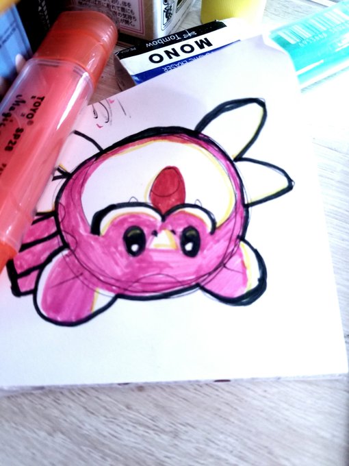 #イラストメイキング…❣️⁉️ ふるさと祭りのパンフレット したにしいて…♥️(∩ˊ͈ ᢐ ˋ͈ ∩) はいけいのいろは、おꫛꫀꪝのえのぐ🎨(♡´∞`♡)かわいいいろ♥️ #ネイプルスイエロー #アクリル画 #ゆるキャラ #ぬい撮り #イラスト